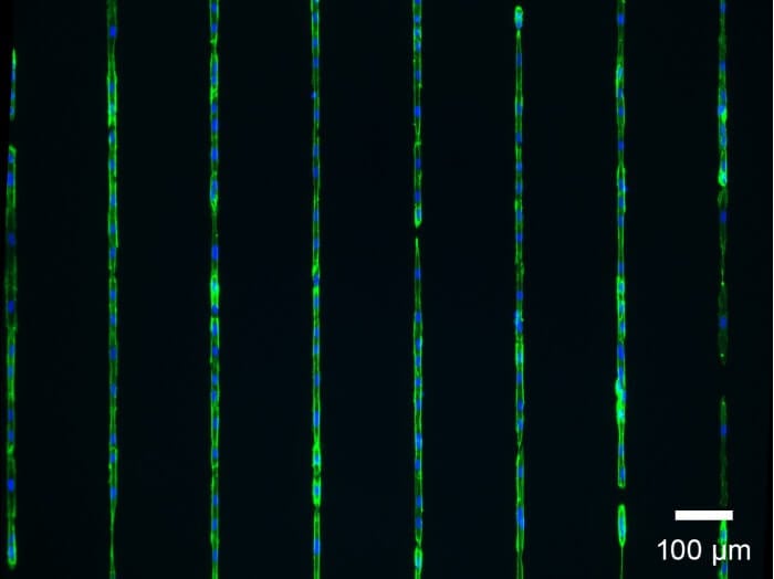 利用ibidi的µ-Patterns技術(shù),可從細(xì)胞懸液中創(chuàng)建線性陳列的圖案,引導(dǎo)細(xì)胞沿一維(1D)微通道特異性附著和生長(zhǎng)。
